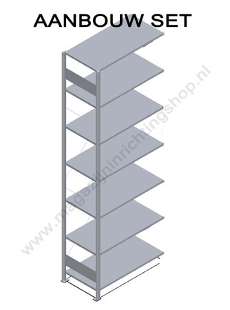 33067-LR-Aanbouwset legbordstelling - ca. 3000x1000x600mm/7 legborden/RAL7035 lichtgrijs/85kg/langstraversen